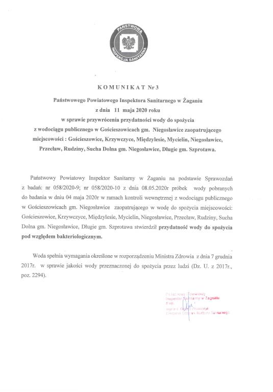 Komunikat PPIS w sprawie przydatności wody do spożycia w m. Długie.